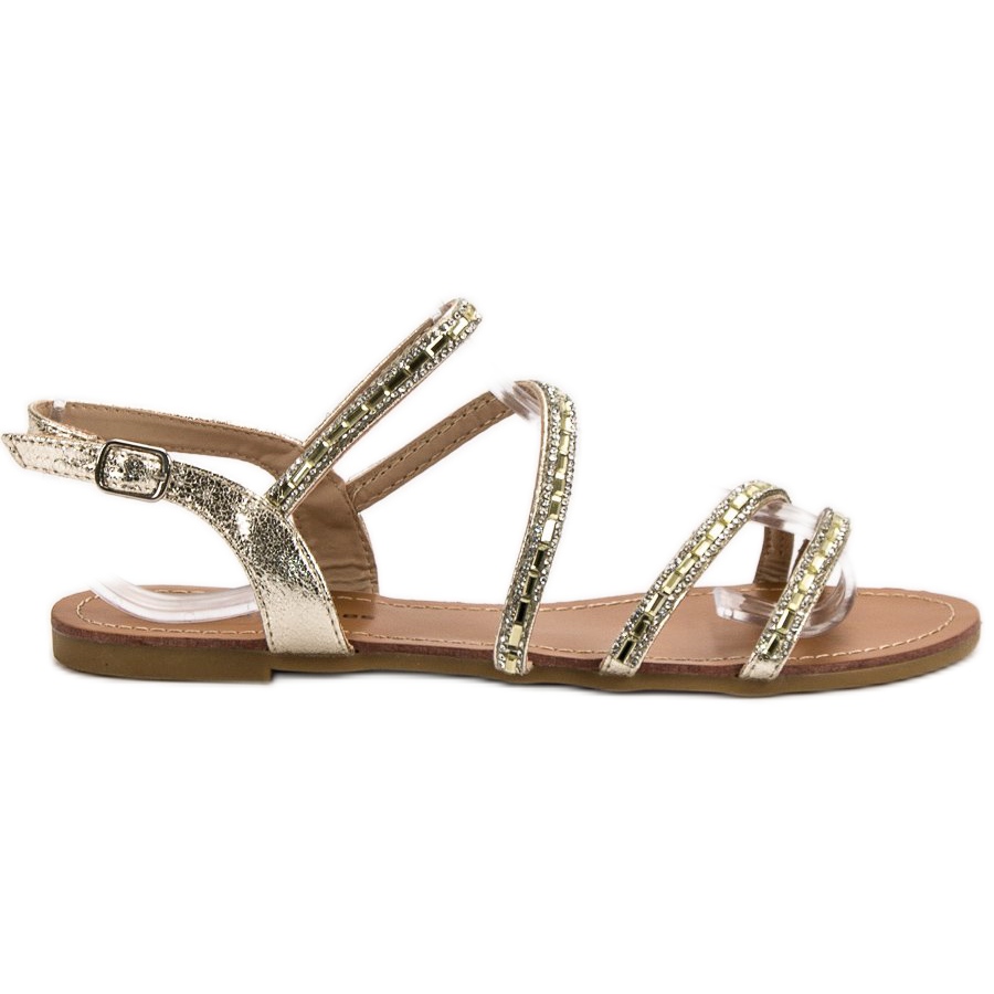 Detalii: L. Lux. Shoes Sandale plate cu zirconiu cubic galben