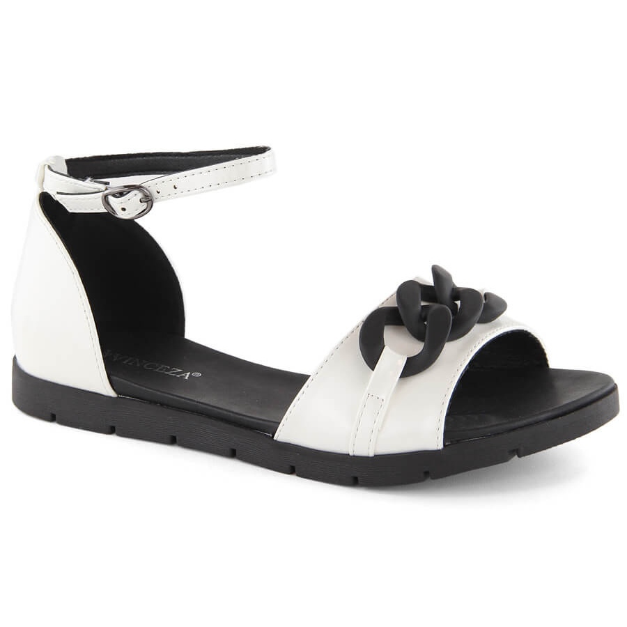 Vinceza Sandale plate de dama cu lant, alb Vinceza 17320