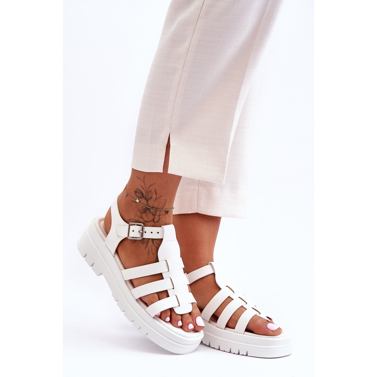 Inna marka Sandale Plate De Piele Cu Dungi Diosa Albe