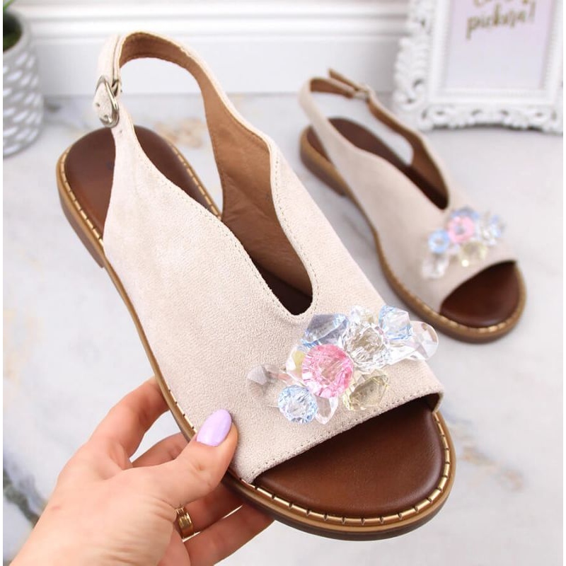 Detalii: Sandale plate de piele intoarsa cu cristale Jezzi W RMR2266-2 bej