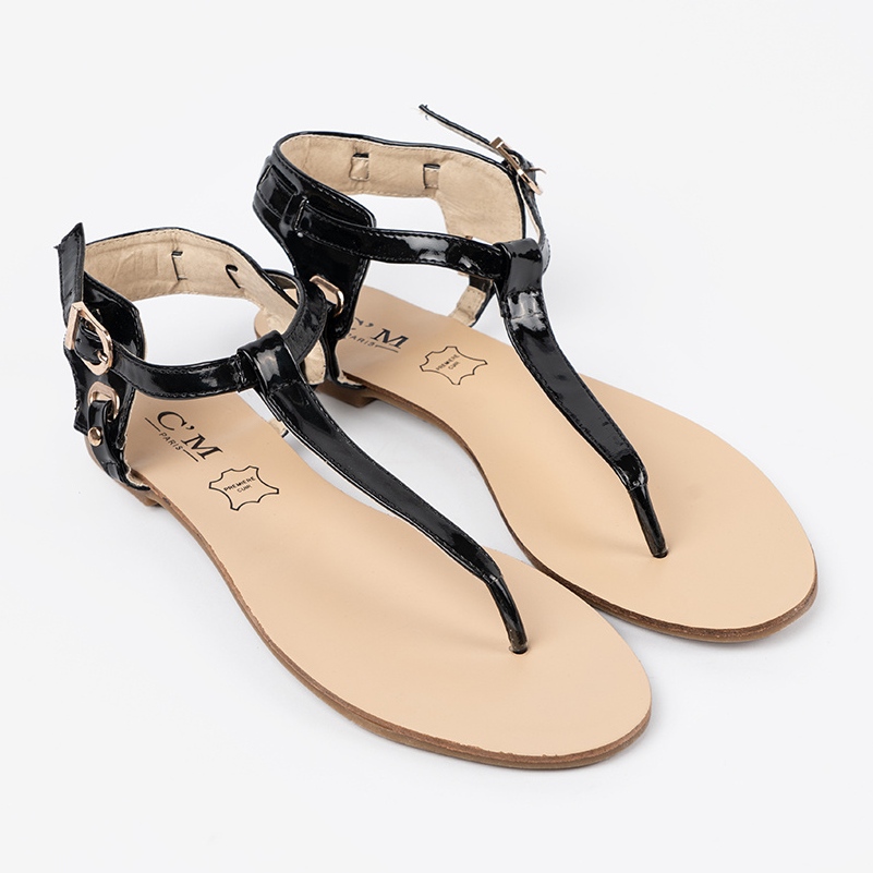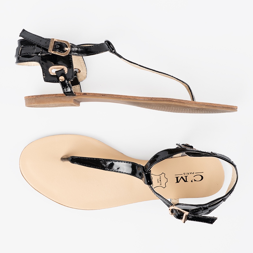 Detalii: Sandale plate negre în stilul japonezului negru