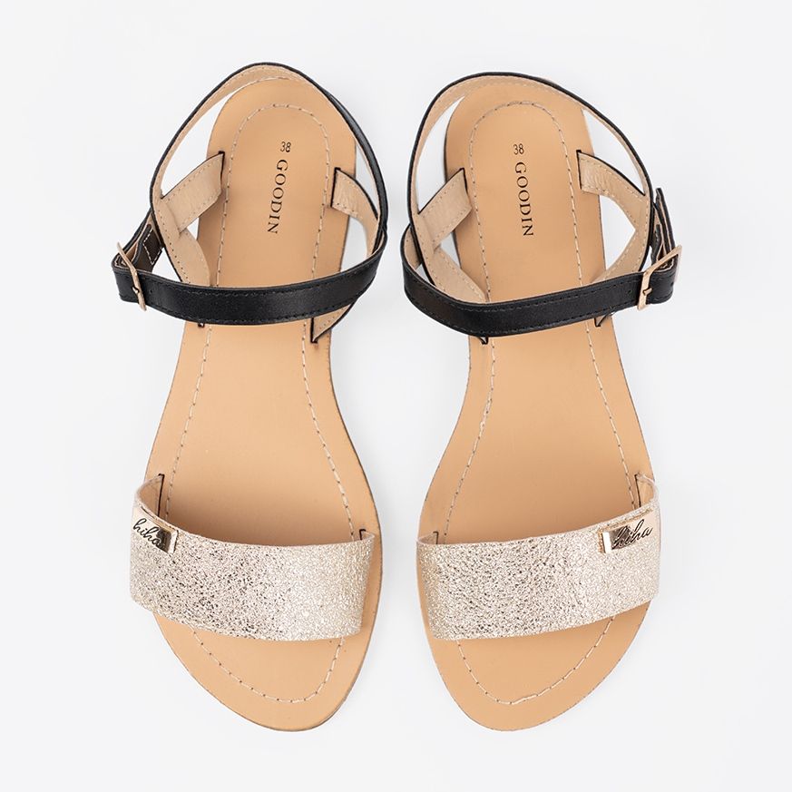 Goodin Goodin Sandale plate pentru femei din aur negru de aur