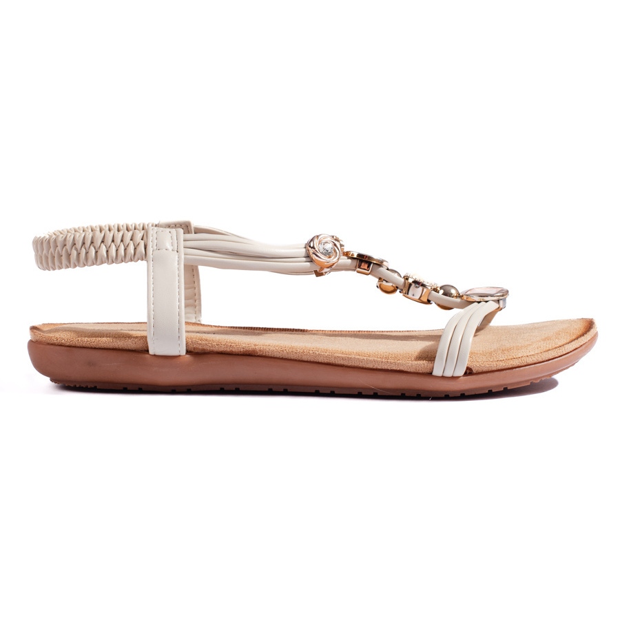 Culoare bej la modă combinată cu accesorii elegante sub formă de zircoane și rinente face ca aceste sandale să fie un complement perfect atât pentru stilizări clasice, cât și pentru modă. Tăierea lor introdusă face ca punerea și decolarea este rapid și fără probleme, iar un călcâi plat cu o înălțime de 3 cm garantează confort chiar și în timpul uzurii pe termen lung.