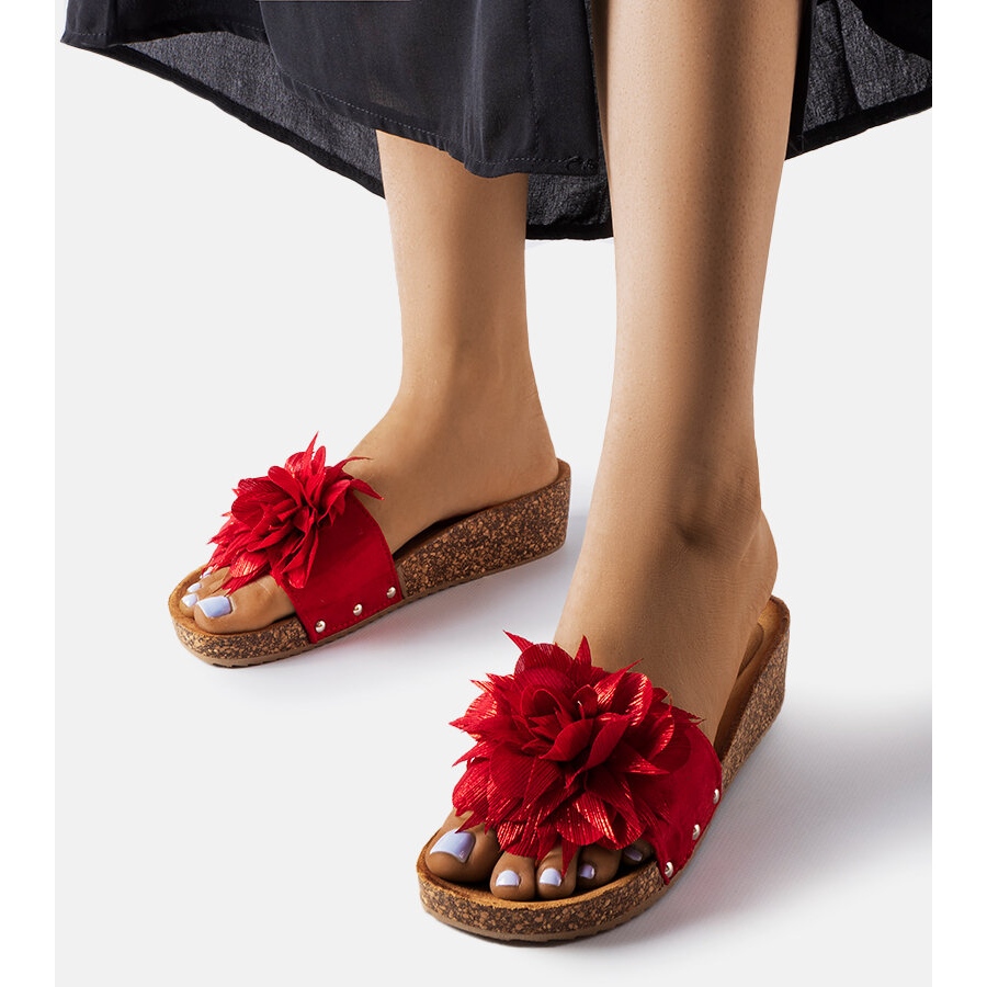 Detalii: Sandale roșii cu o floare pe talpă de plută de la Anjali roșu