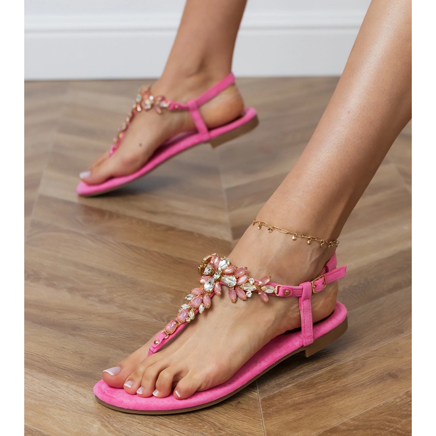 Sandalele erau confecționate din piele ecologică din piele de căprioară, ceea ce garantează nu numai un aspect elegant, ci și confortul de a purta toată ziua. O culoare roz delicată la nuanța Fuchsia va adăuga prospețime și bucurie a fiecărei creații, iar cristalele subtile le vor oferi strălucire, distingându -le de alte modele.