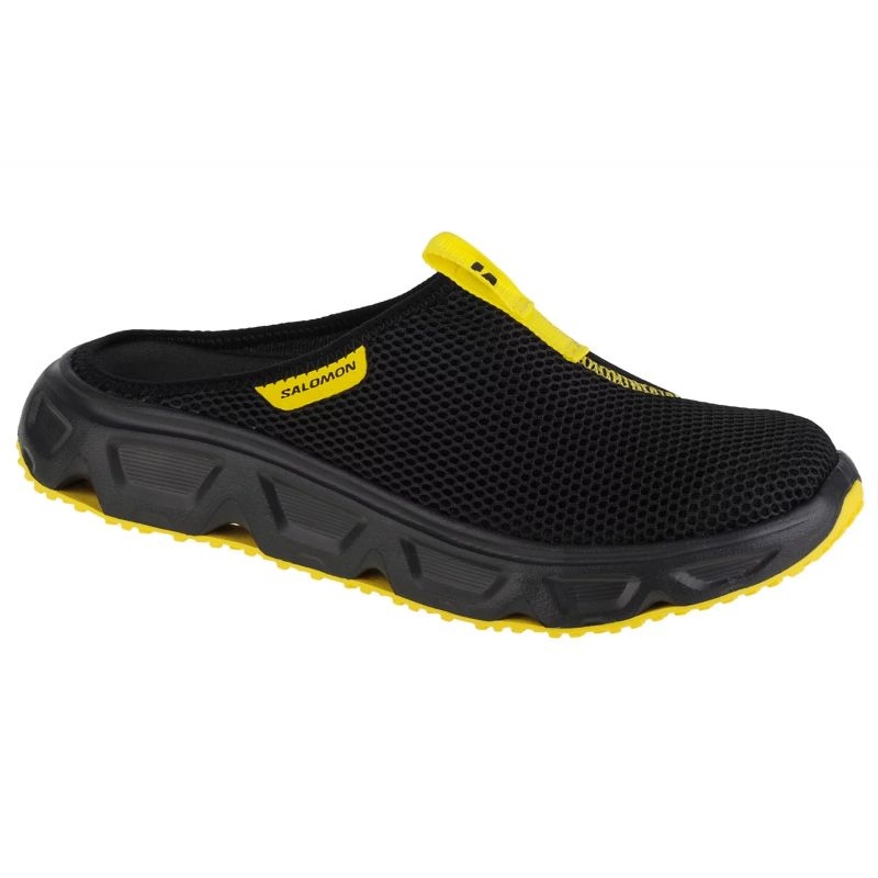 Sandalele Salomon Reelax Slide 6.0 sunt disponibile în negru elegant, cu accente galbene, ceea ce le subliniază și mai mult designul modern. Fără succes, pot deveni un element inseparabil al oricărui stil de vară sau al garderobei de zi cu zi.