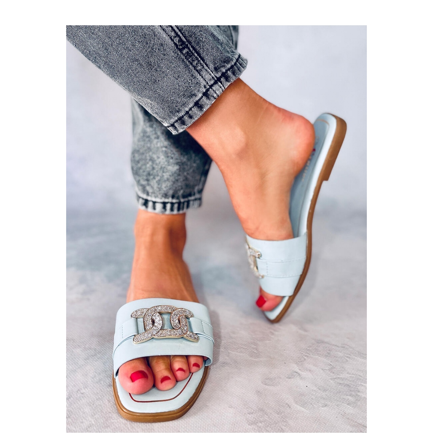 Detalii: Sandale șlapi cu stras Mille Blue - Inello albastru