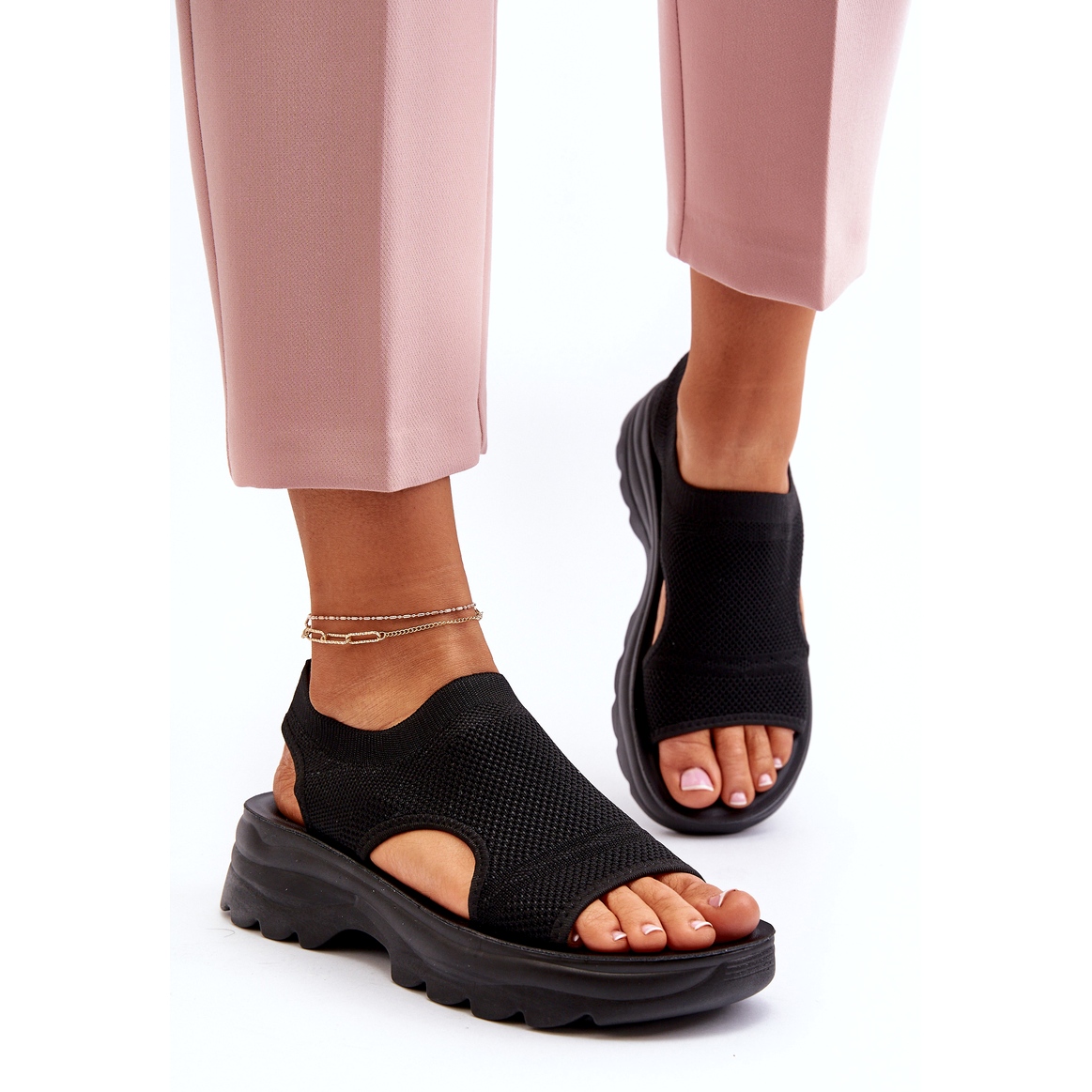 Detalii: Sandale sport pentru damă, cu talpă groasă, negre negru