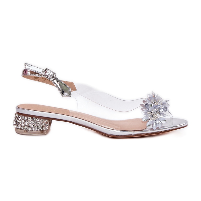 Detalii: S.Barski Sandale transparente cu toc scăzut cu decorare de argint MR51-709