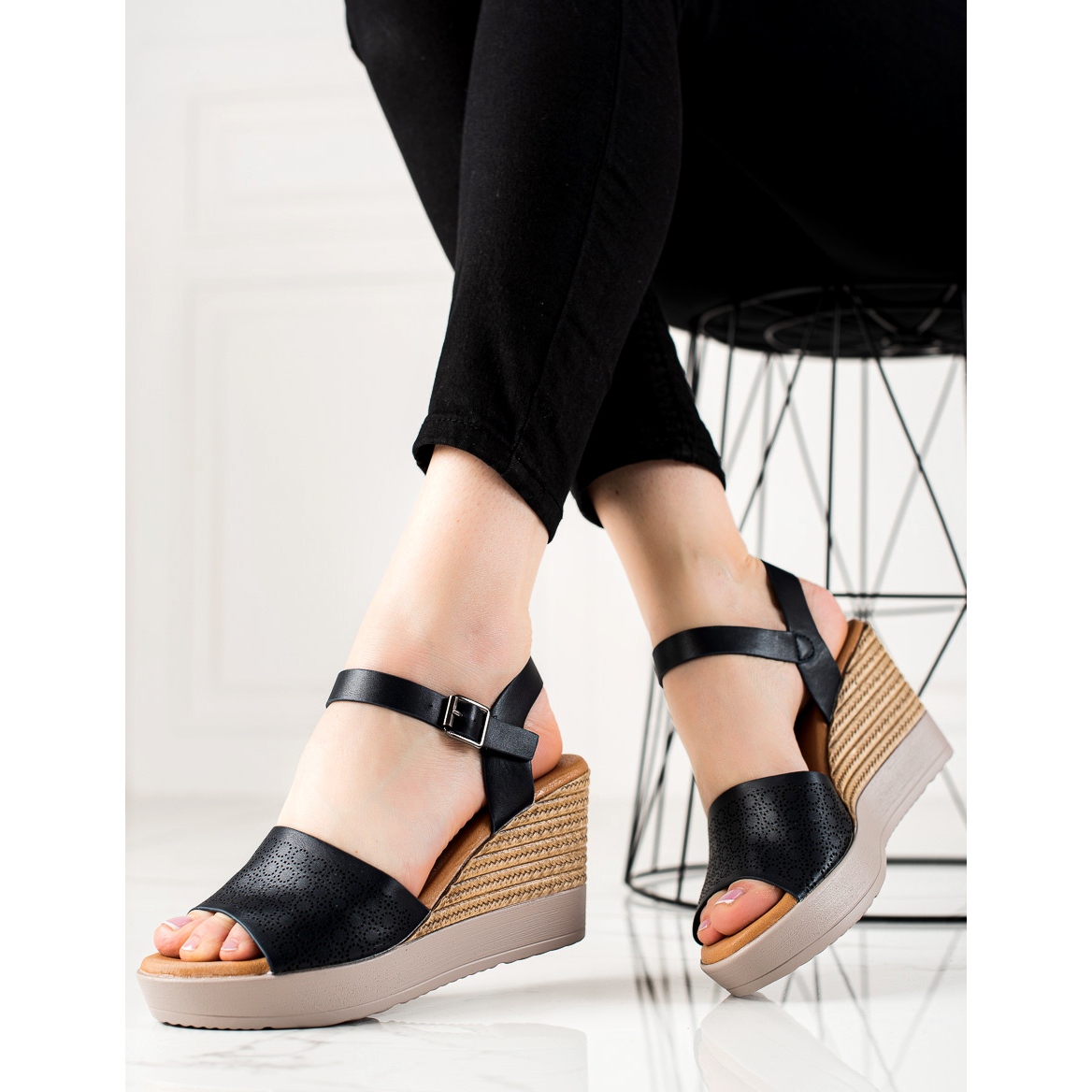 O pană de 8,5 cm înălțime combinată cu o platformă de 2,5 cm asigură stabilitate și confort la purtare, iar talpa sintetică cu benzi de rulare face sandalele potrivite pentru diverse suprafețe. Manopera de inalta calitate si utilizarea de piele ecologica in brant si material interior asigura confortul piciorului pe tot parcursul zilei.
