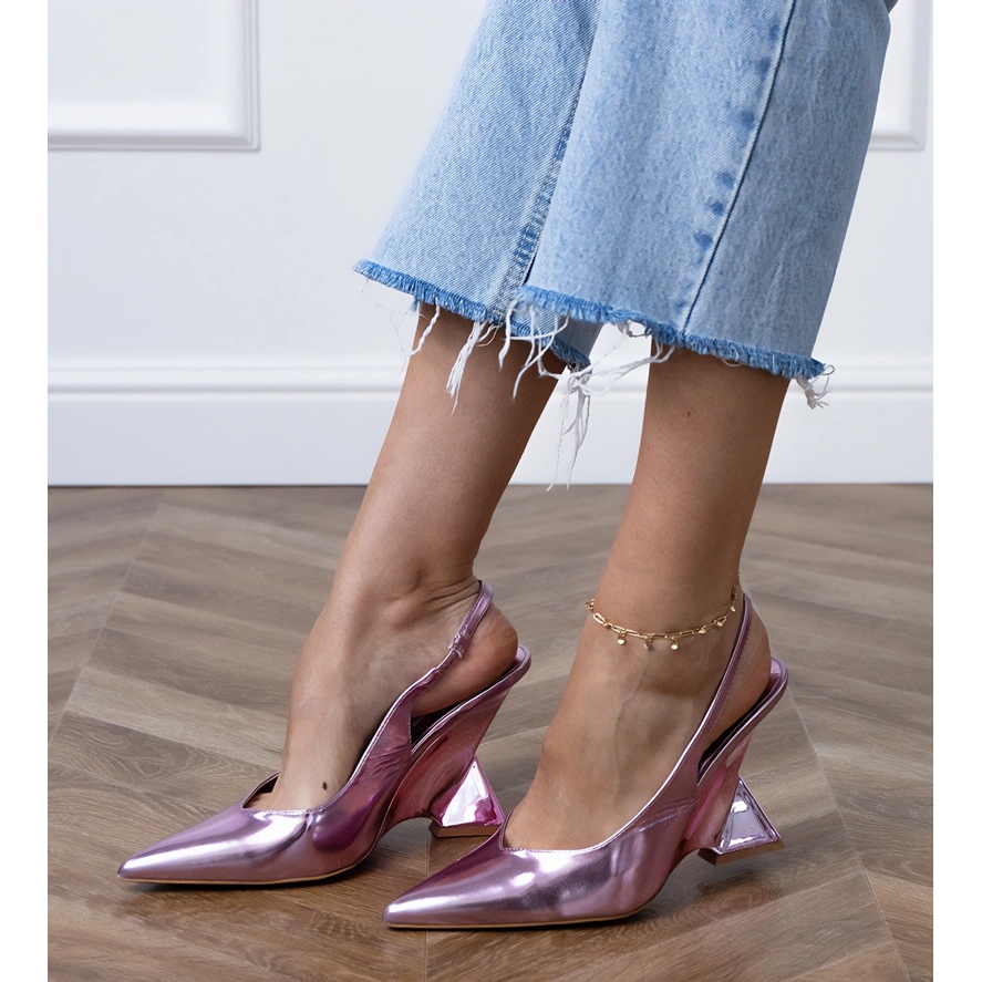 Descoperiți sandalele purpurii unice pe o pană geometrică - alegerea perfectă pentru femeile care apreciază stilul și confortul. Aceste sandale clasice, modelul E30072, se disting printr -un finisaj frumos, lăcuit, într -o nuanță de violet, care cu siguranță va atrage atenția și va adăuga personajul fiecărei stilizări de vară.