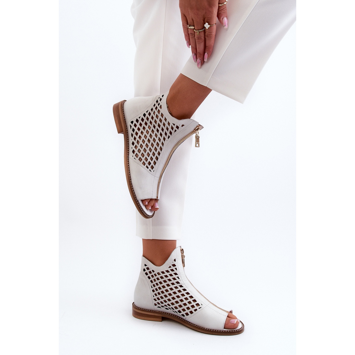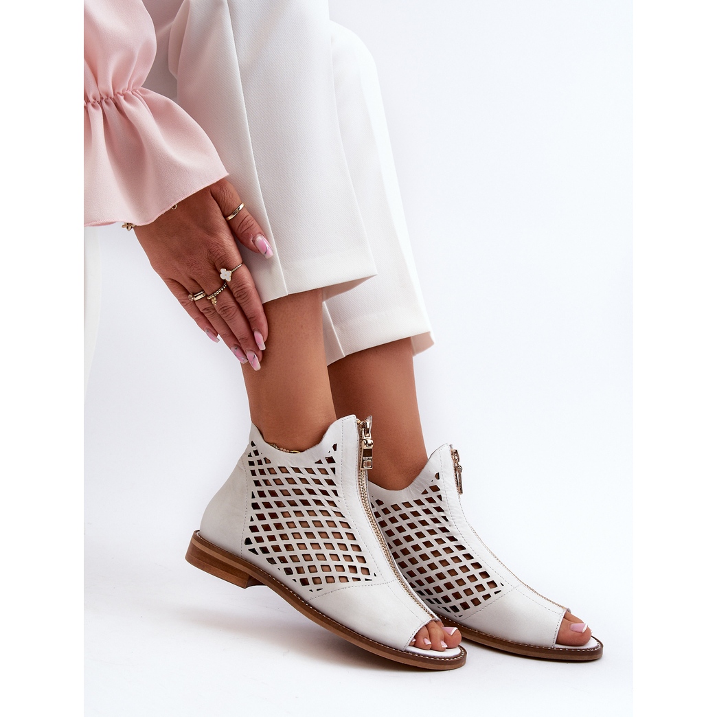 Zazoo Sandale Zazoo 977/L Piele Ajurata Cu Fermoar, Alb