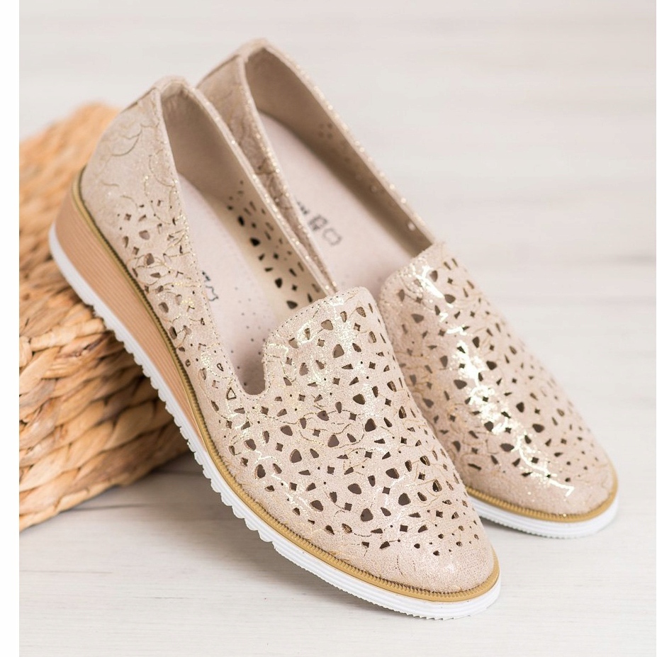 Descoperă un stil unic cu Lorzii aurii strălucitori de la Goodin! Acest model extrem de impresionant imbina eleganta cu confortul, ceea ce il face o alegere perfecta pentru zilele de primavara si vara. Finisajul ajurat al acestor mocasini nu numai că se potrivește cu ultimele tendințe, dar asigură și o ventilație adecvată, datorită căreia picioarele tale vor rămâne proaspete și confortabile toată ziua.