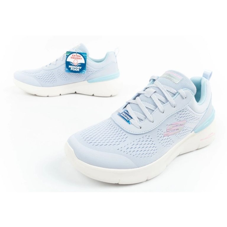 Vă prezentăm încălțăminte sport pentru femei Skechers Air Dynamight 2.0 într -o frumoasă nuanță albastră cu accente violet. Acest model (codul produsului 150370/PWPK) combină designul la modă cu un confort excepțional de utilizare, ideal pentru femeile active.