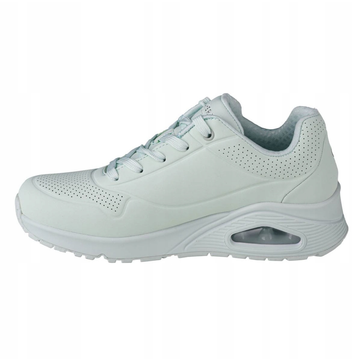Pantofii Skechers Uno Frosty Kicks W 155359-MNT sunt alegerea perfectă pentru femeile care caută o combinație de stil, confort și funcționalitate. Acești pantofi sport albi, cu vârful joasă, se disting prin designul lor minimalist și construcția solidă, ceea ce îi face perfecți atât pentru stilul de zi cu zi, cât și pentru antrenament.