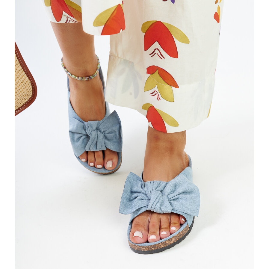 Un detaliu interesant este fundita, care adaugă un plus de farmec întregului și face ca șlapii să iasă în evidență față de alte modele. Culoarea albastră, cunoscută sub numele de CELESTE, combinată cu o talpă neagră creează un set stilat care poate fi ușor combinat cu rochii, pantaloni scurți sau pantaloni de vară.