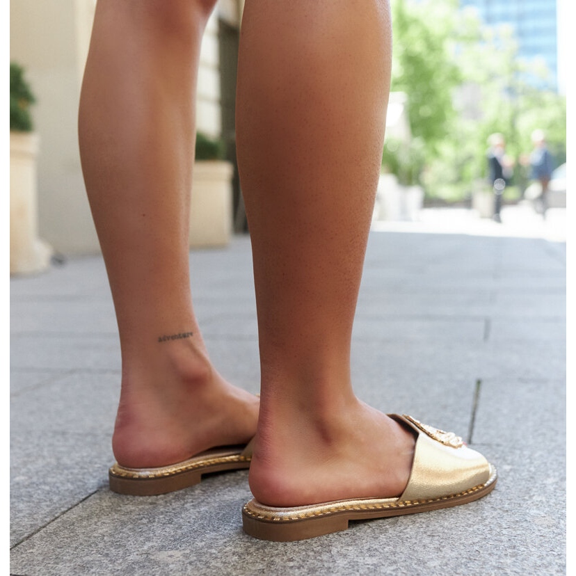 Inna marka Șlapi aurii cu inserție din piele de la Buenas de aur