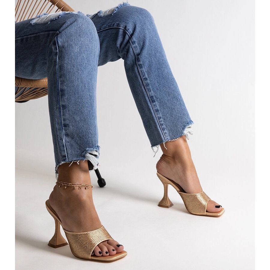 Inna marka Șlapi aurii cu toc înalt și zirconi de la Genowefa de aur