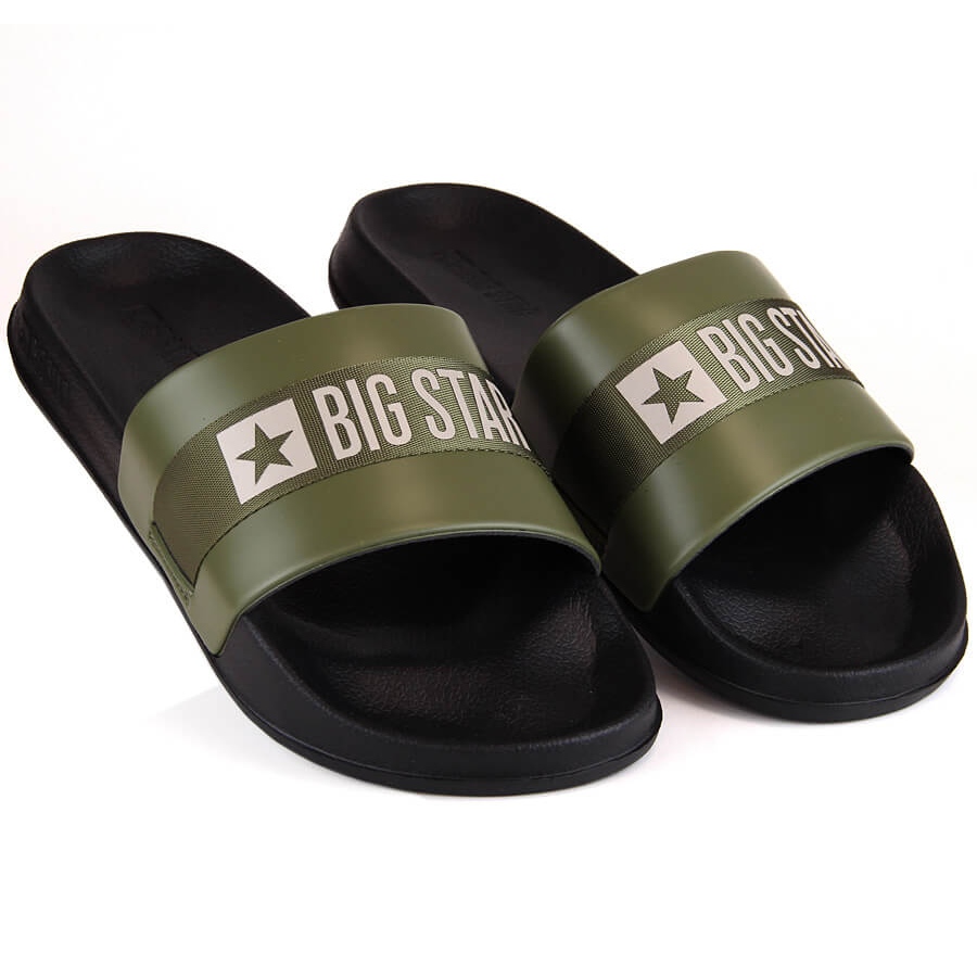 Big Star Șlapi bărbați din piele ecologică kaki Big Star LL174458 verde