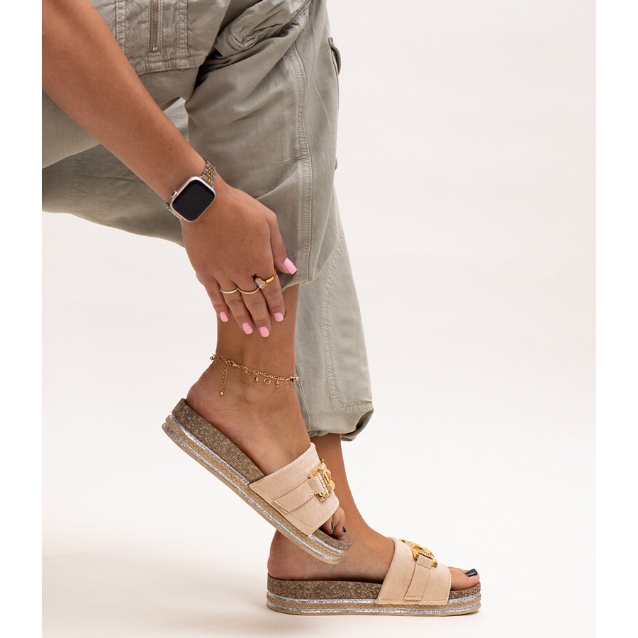 Inna marka Șlapi bej cu cataramă strălucitoare de la Niamh