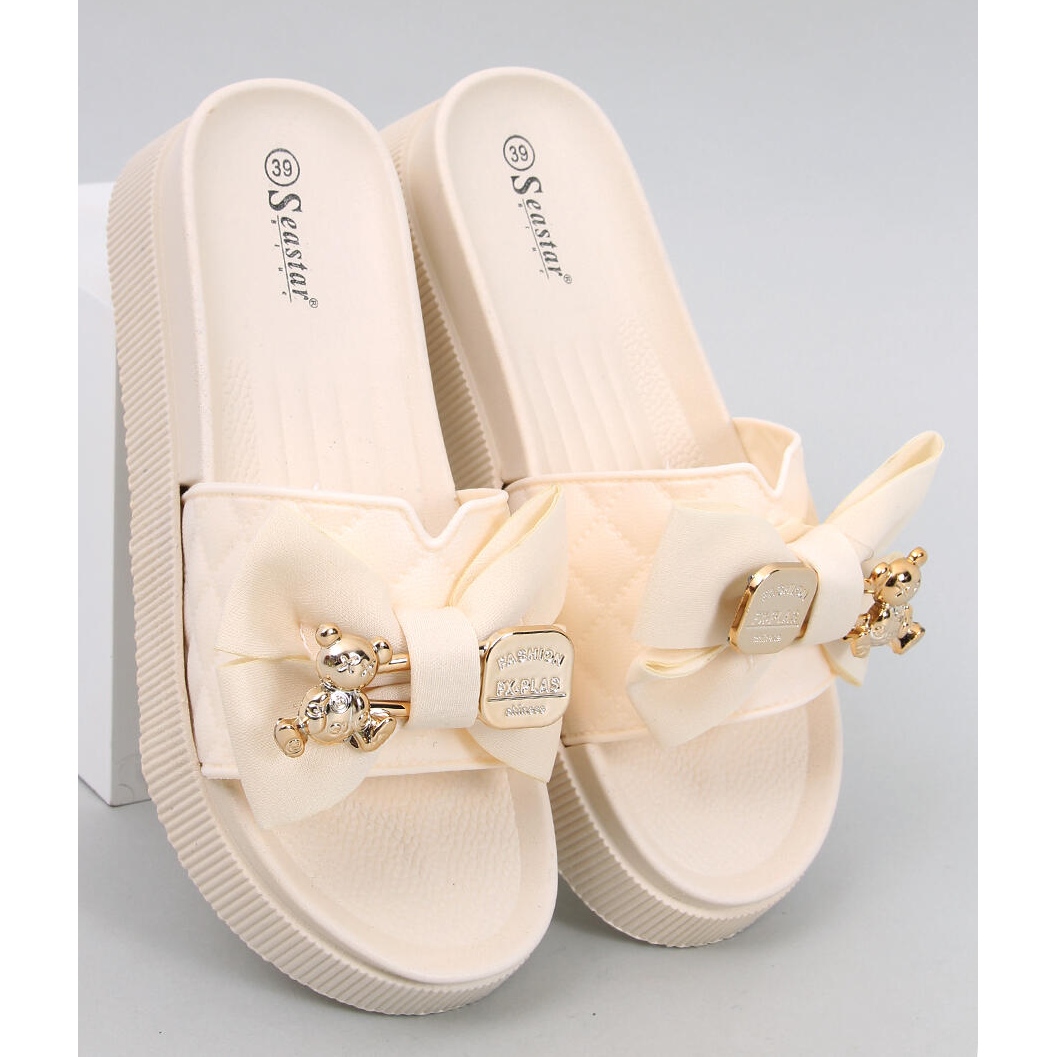 Inna marka Șlapi Brandis Beige auriu cu ursuleț de pluș bej
