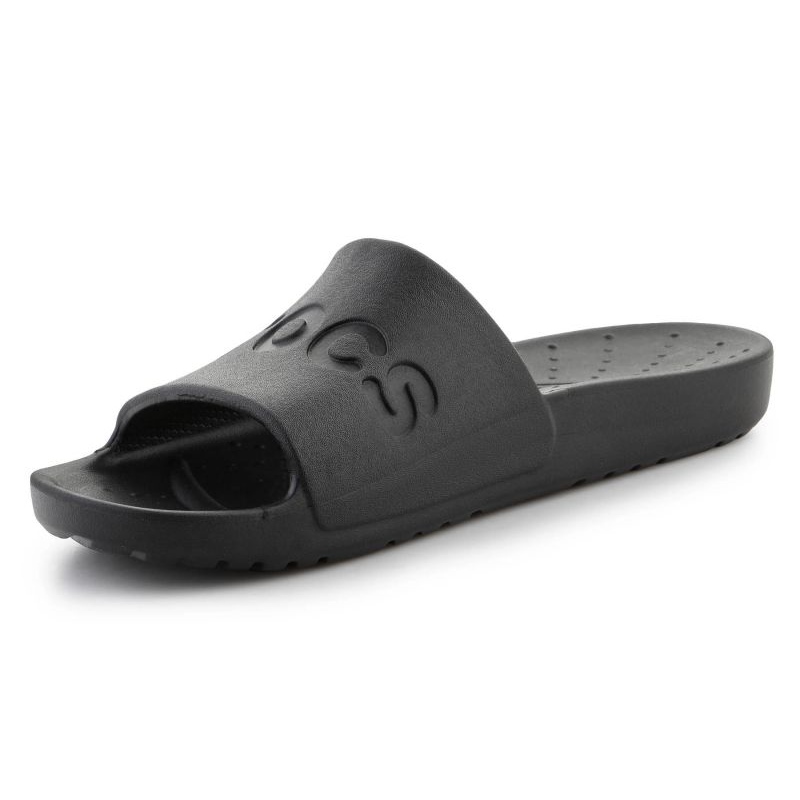 Designul lor minimalist, modern le face să se potrivească perfect cu orice stil - atât pentru plajă, cumpărături de zi cu zi sau plimbări relaxante în grădină. Culoarea neagră universală face din șlapii Crocs Slide un plus excelent pentru orice garderobă.