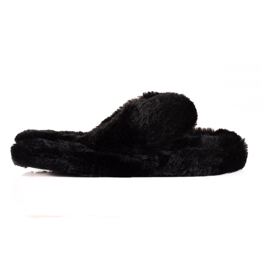 Vă prezentăm șlapi eleganti și stilați din blană neagră de la renumitul producător TRENDI. Acești papuci unici combină perfect confortul cu designul la modă, ceea ce îi face o alegere excelentă pentru utilizarea de zi cu zi.