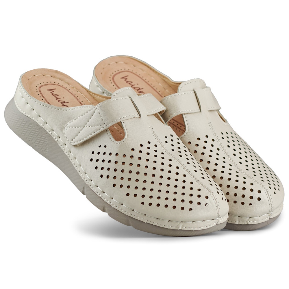 Detalii: Slapi de sănătate pentru femei cu degete închise și velcro bej