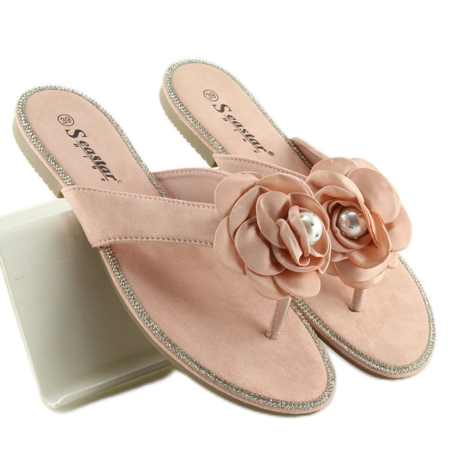 Descoperiți șlapii fermecătoare roz CK31P roz - alegerea perfectă pentru zilele mai calde! Acești pantofi unici de damă încântă nu numai prin culorile lor, ci și cu un plus impresionant sub formă de floare cu perlă, care îi face originali. Talpa împânzită cu zirconi subțiri subliniază în plus caracterul lor elegant, făcându-le o potrivire perfectă pentru tendințele modei.