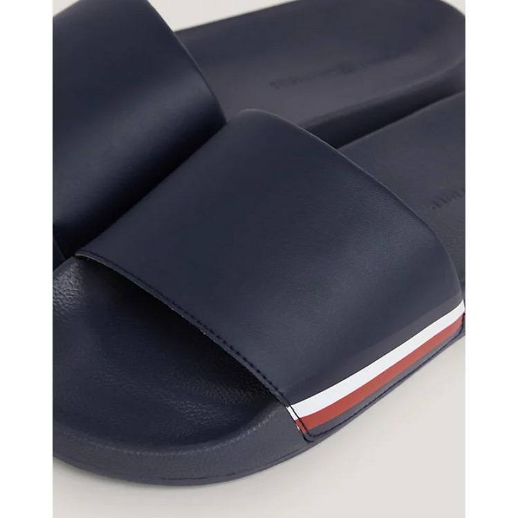 Slapii Tommy Hilfiger Corporate Hilfiger Pool Slide M FM0FM04853DW5 nu sunt doar încălțăminte confortabilă, ci și un accesoriu la modă care ar trebui să fie în colecția fiecărui bărbat care prețuiește stilul și confortul. Acestea sunt clasice pentru zilele de vară, perfecte pentru piscină, plimbări pe plajă sau prin casă.