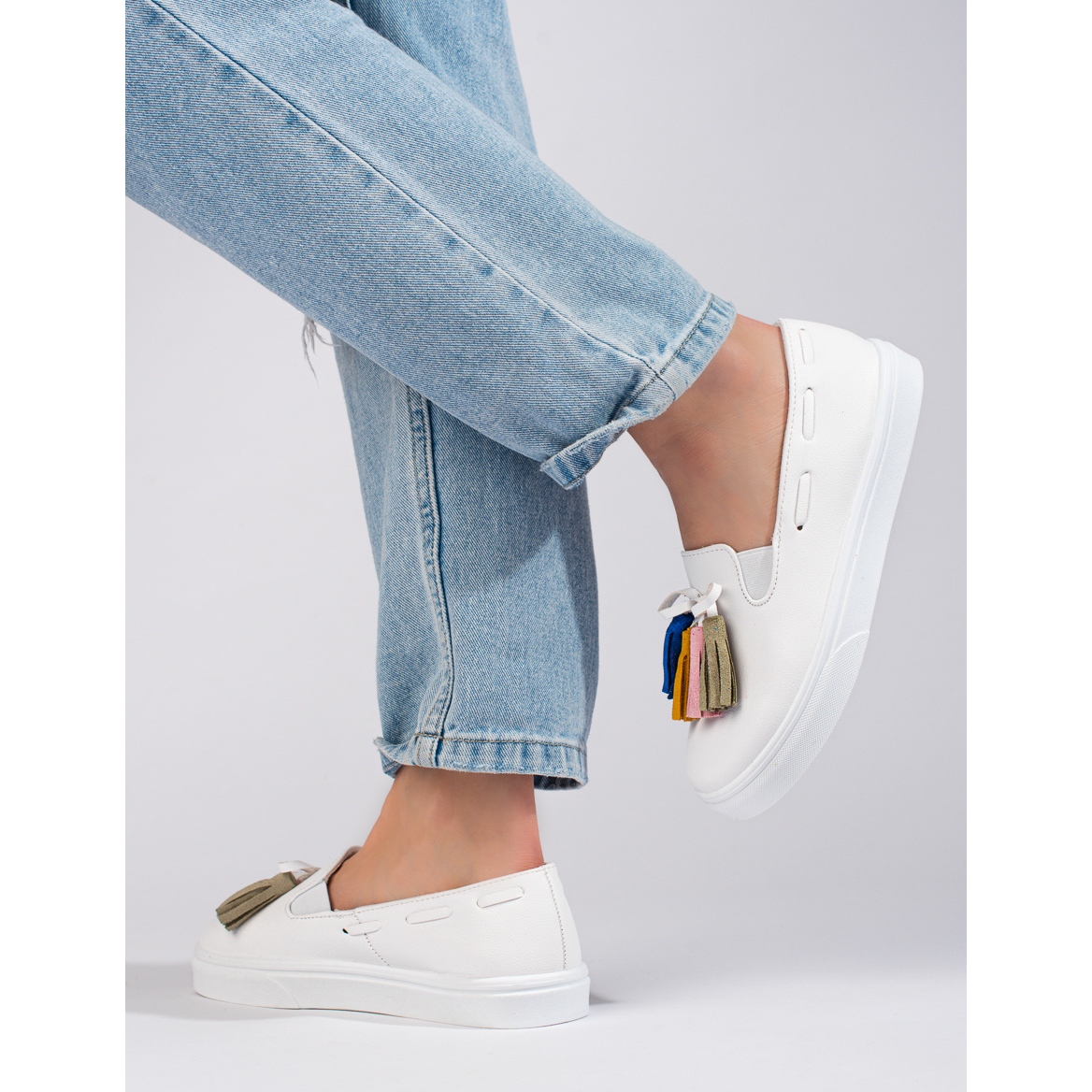 Slip-on Shelovet din piele intoarsa cu franjuri in alb este o alegere excelenta pentru femeile care apreciaza combinatia de confort si stil intr-una singura. Produsul cunoscutului brand SHELOVET se distinge prin stilul său sportiv și casual, care se încadrează perfect în peisajul urban și va funcționa bine și în situații profesionale mai puțin formale sau în timpul întâlnirilor cu prietenii.