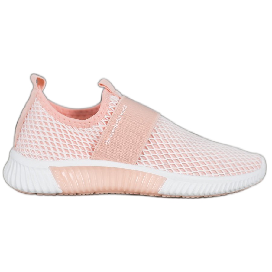 Pantofii sunt fabricați din material textil de înaltă calitate, care asigură nu numai durabilitate, ci și respirabilitate adecvată în zilele mai calde. Structura lor ajurata combinata cu o culoare roz delicata adauga lejeritate si prospetime oricarui stil. Degetul rotund și călcâiul moale încorporat garantează confortul la purtare pe tot parcursul zilei.