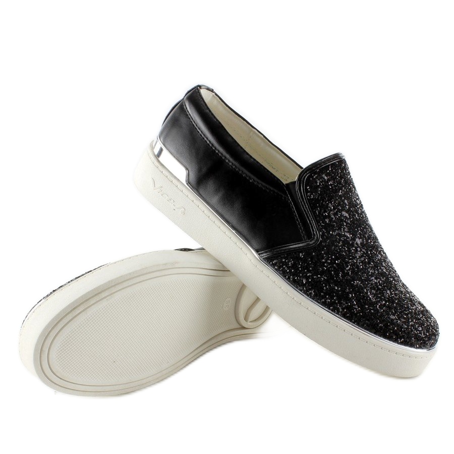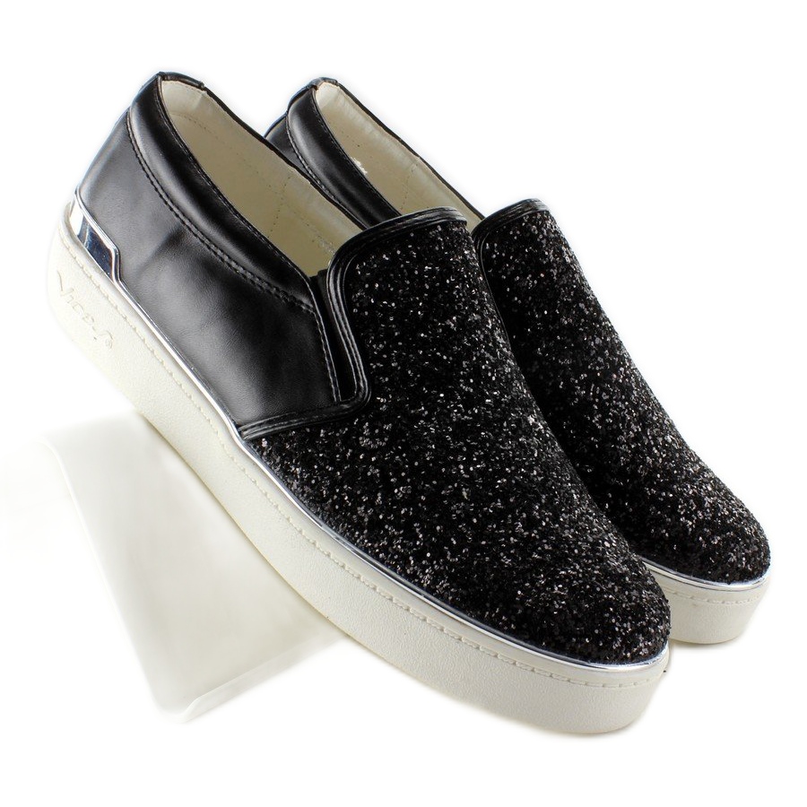 Vă prezentăm slip-on-urile 788-26 stilate și elegante în negru - alegerea perfectă pentru femeile care doresc să îmbine confortul cu eleganța. Acești pantofi sport slip-on la modă se remarcă printr-o talpă albă cu o inserție metalică subtilă, subliniind caracterul lor elegant.