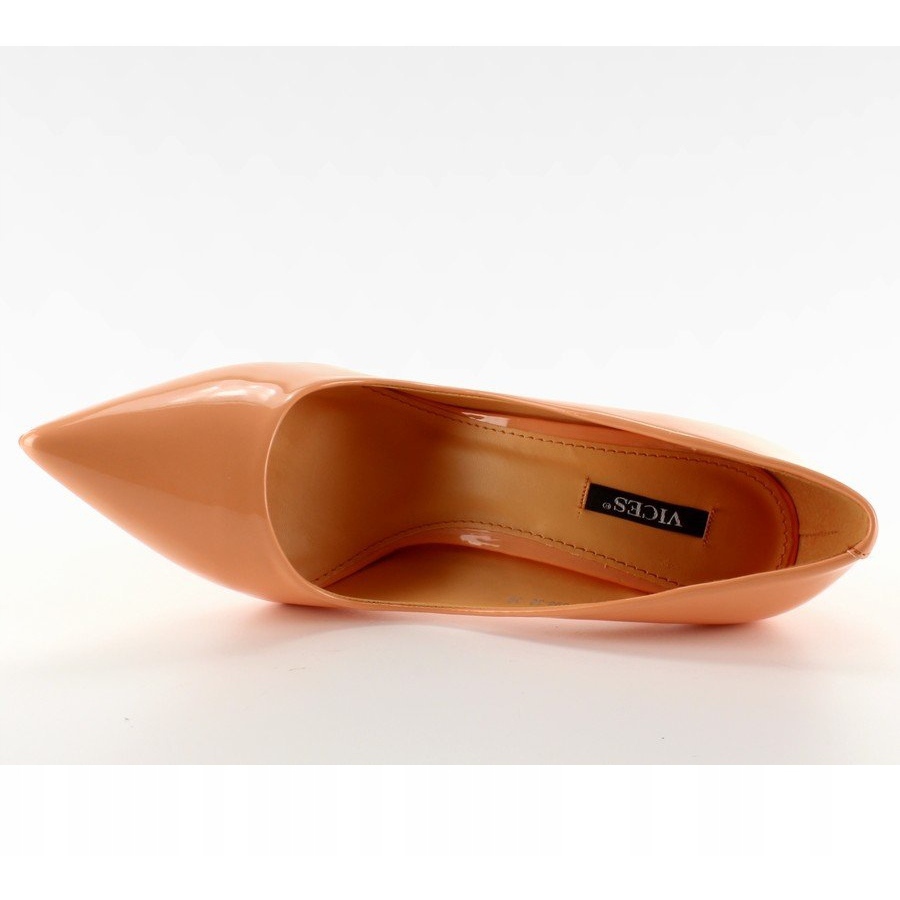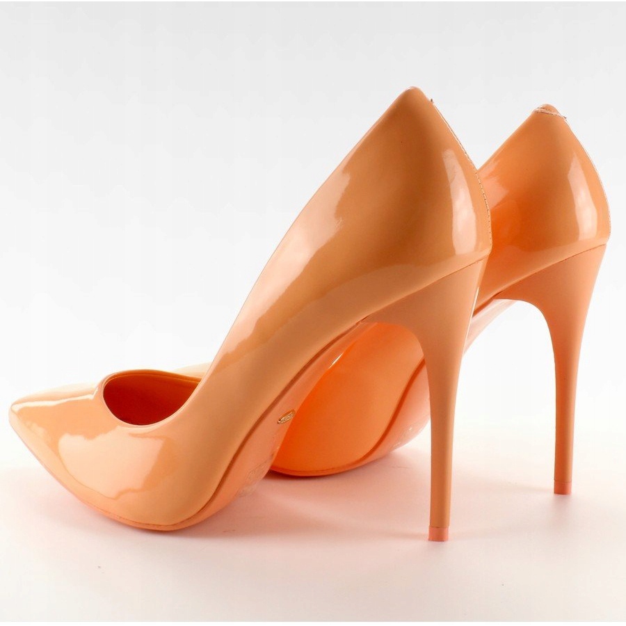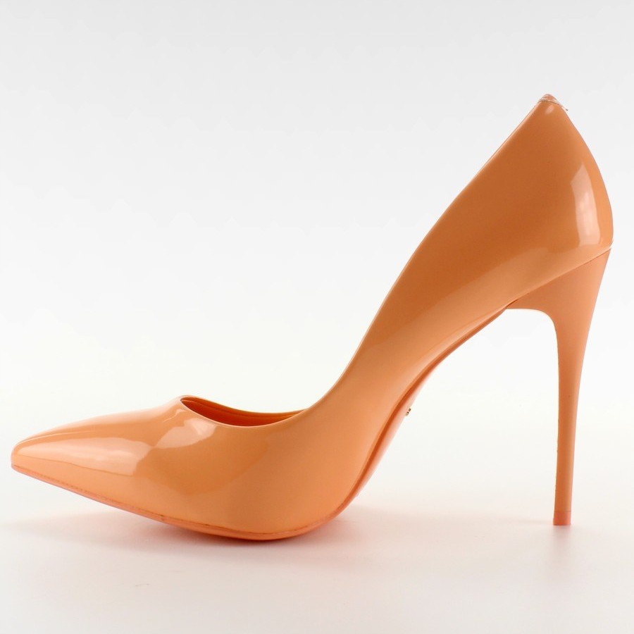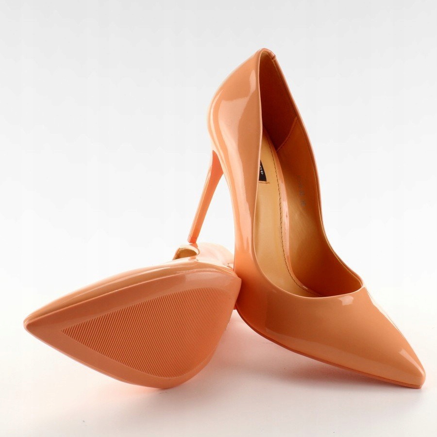 Vă prezentăm tocuri înalte lăcuite netede E396 într-o nuanță încântătoare de portocaliu. Acești pantofi eleganți sunt complementul perfect pentru orice stil și vă vor face aspectul orbitor. Înălțimea tocului de 11 cm și vârful senzual, ascuțit, subliniază silueta feminină, făcând picioarele să arate uimitor.