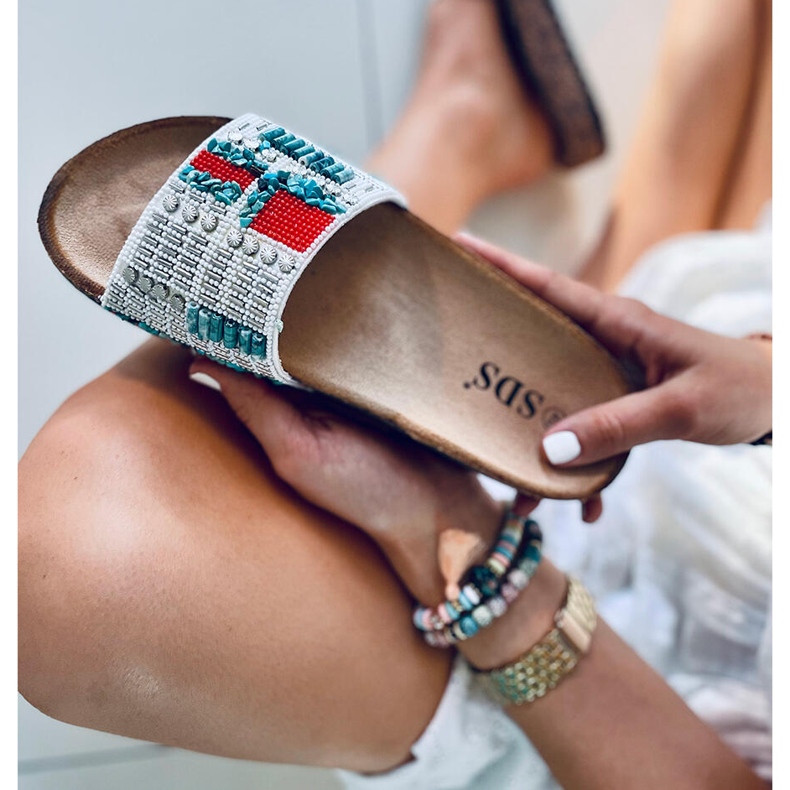 Șlapii Taida White din plută sunt o alegere perfectă pentru femeile care apreciază confortul și stilul. Confectionati din piele intoarsa ecologica, acesti slapi albi incanta cu decoratiuni atrăgătoare în stil etno care le dau un caracter unic. Datorită inserției interioare atent profilate, acoperite cu material textil, șlapii oferă un confort excepțional, perfect pentru plimbările lungi de vară.