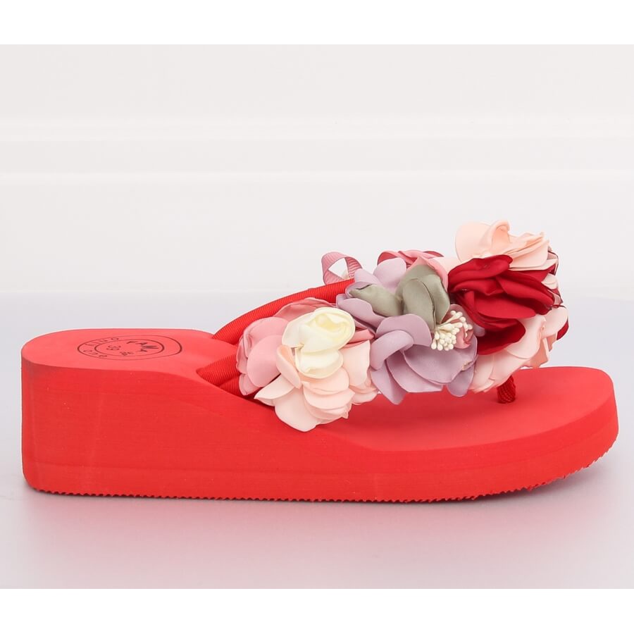 Descoperiți șlapi roșii unici FM5050 Red cu talpă din spumă, care îmbină perfect confortul și moda! Acești șlapi de damă, așezați pe o pană ușoară de 5 cm înălțime, sunt o alegere perfectă pentru zilele de vară. Se disting nu numai prin confortul lor de purtare, ci și prin detalii încântătoare, multicolore și decorațiuni florale fermecătoare, care atrag atenția datorită perlelor și zirconilor impresionante.