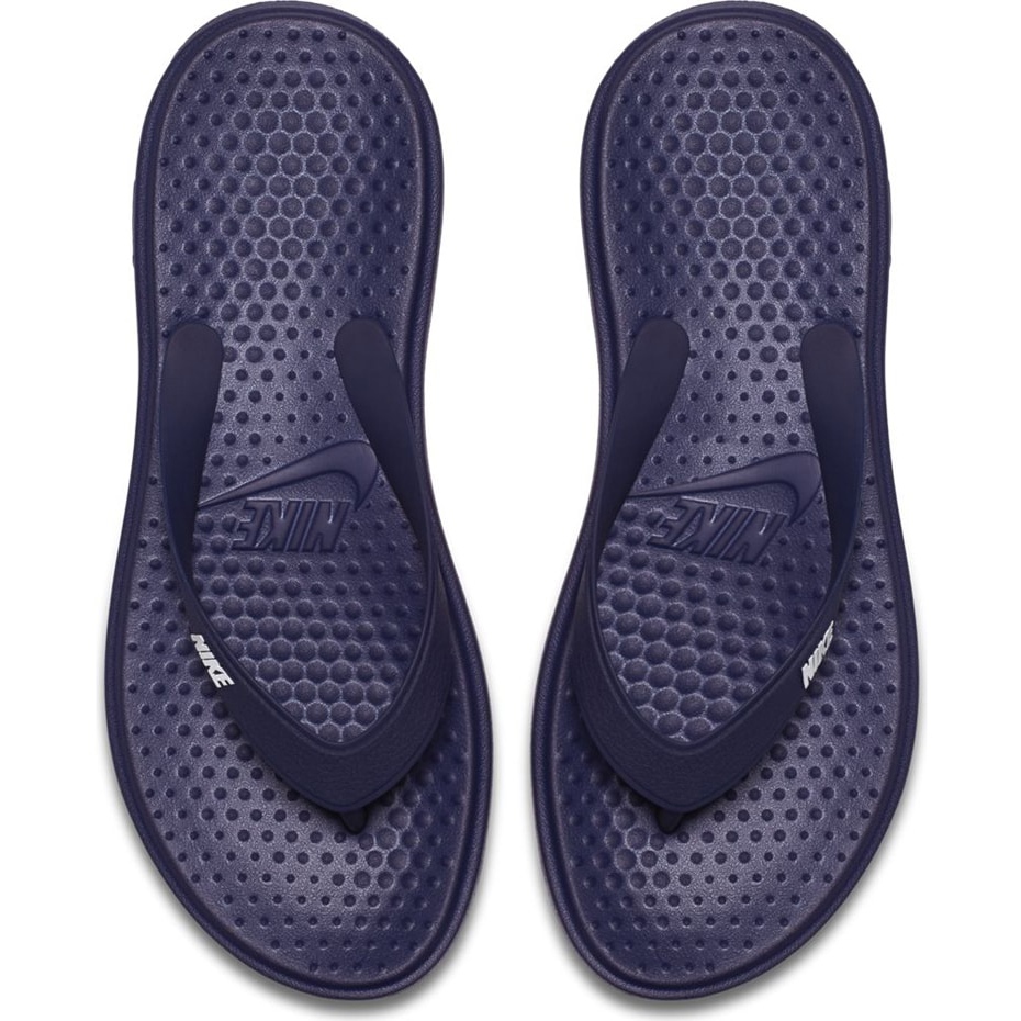 Nike Solay Thong 882690 400 Flip Flops - Flip Blue Navy pentru bărbați care combină simplitatea și confortul. Designul ușor, talpa de spumă moale și dungi subțiri de cauciuc fac ca acesta să fie modelul perfect pentru plajă, casă și pentru producții rapide vara.