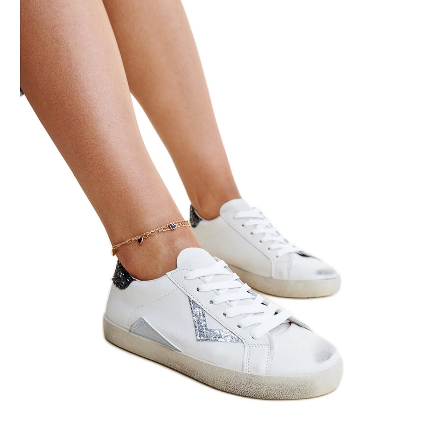 Detalii: Tenisi albi cu efect uzat de Gombol