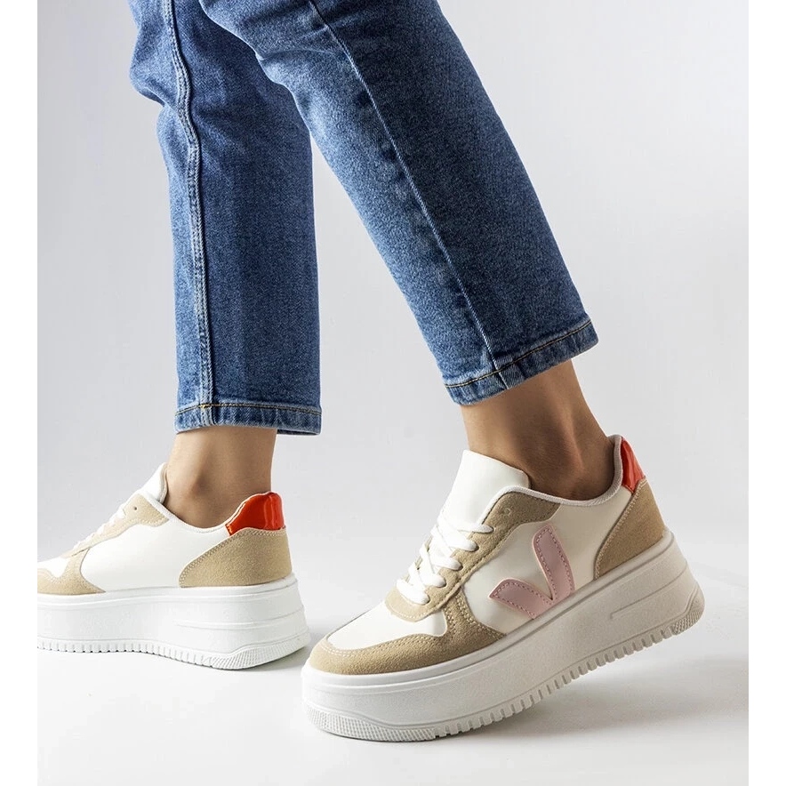 Detalii: D/GMR Tenisi albi cu inserție Plouffe roz