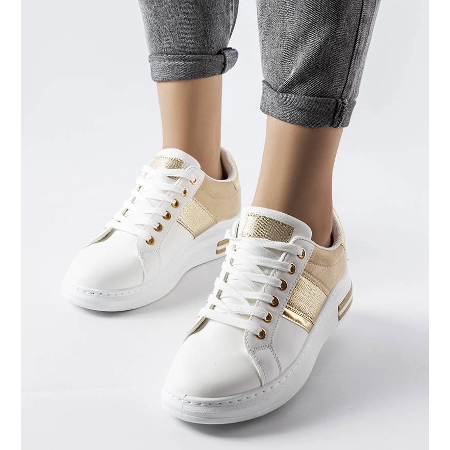 Decani - adidași pentru femei albe cu inserții bej și accente de aur