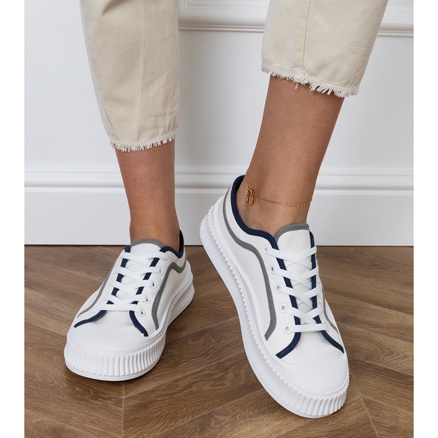 Culoarea lor albă universală înseamnă că pot fi combinate cu ușurință cu diverse stilizări - atât casual, cât și mai elegante. Interiorul fabricat din țesătură garantează comoditate și ventilație adecvată, ceea ce este deosebit de important în timpul unei uzuri lungi. Fixerul de dantelă -up permite o potrivire precisă a piciorului, ceea ce crește confortul utilizării.