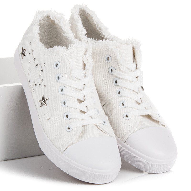 Descoperiți eleganța subtilă în adidașii din material alb, care vor fi complementul perfect pentru orice stil. Acești pantofi unici se caracterizează printr-o nuanță de zăpadă și un finisaj unic în jurul gleznei, care le conferă un farmec de fetiță. Decoratiunile sub forma de puncte si stele delicate fac adidasii sa iasa in evidenta, pastrand in acelasi timp un stil minimalist.
