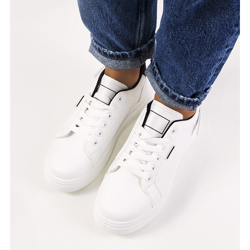 Pantofii au vârf rotund și închidere cu șireturi, ceea ce îi face să se potrivească perfect piciorului. Talpa din cauciuc garantează o bună aderență, iar branțul din material textil asigură moliciune în timpul utilizării. Întregul lucru este într-o culoare albă elegantă, ceea ce o face o soluție universală pentru multe ocazii.