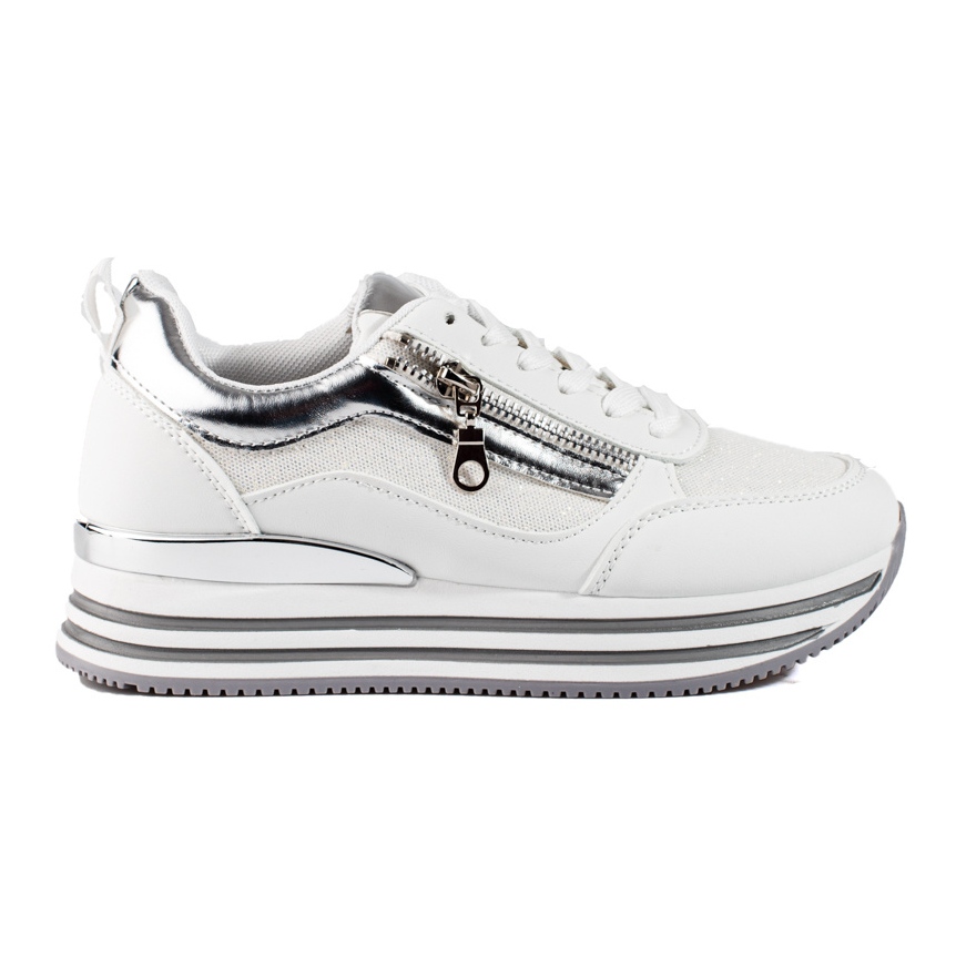 SHELOVET Tenisi albi și argintii pe platforma Shelovet