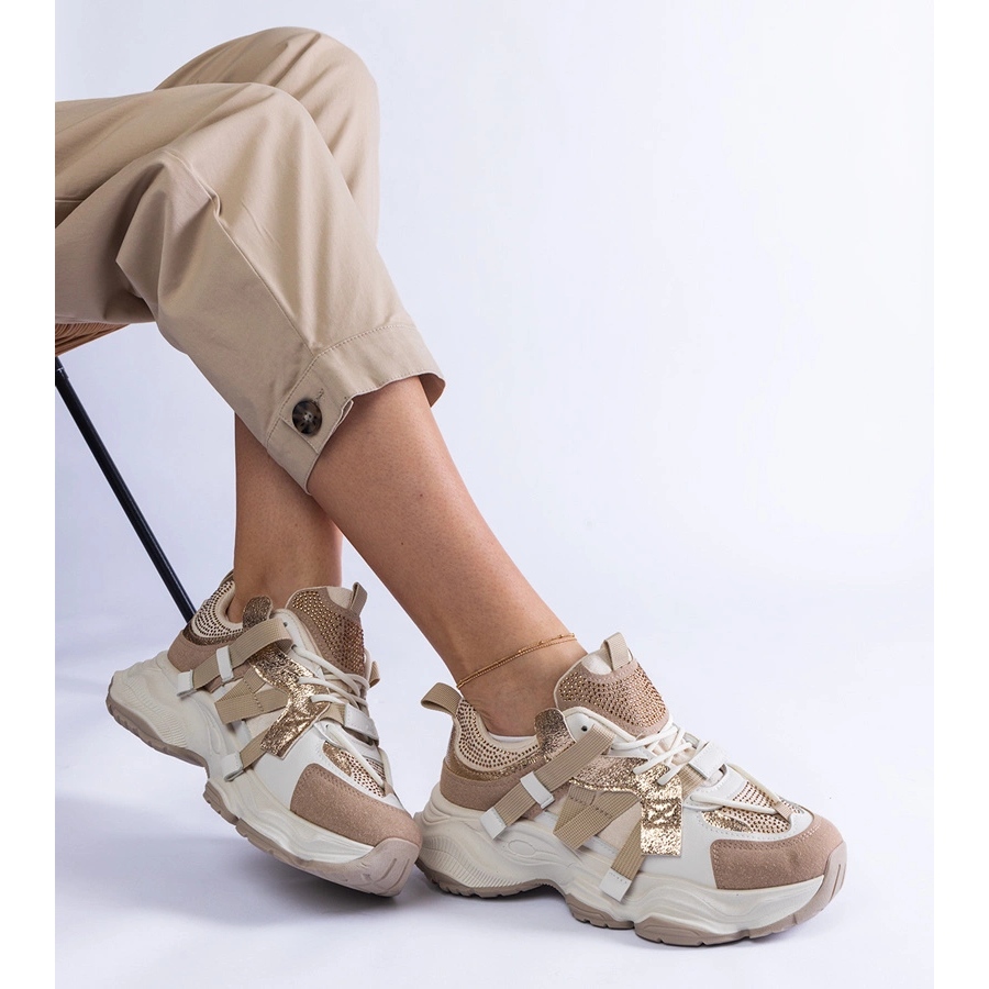 Detalii: Tenisi bej cu inserții aurii