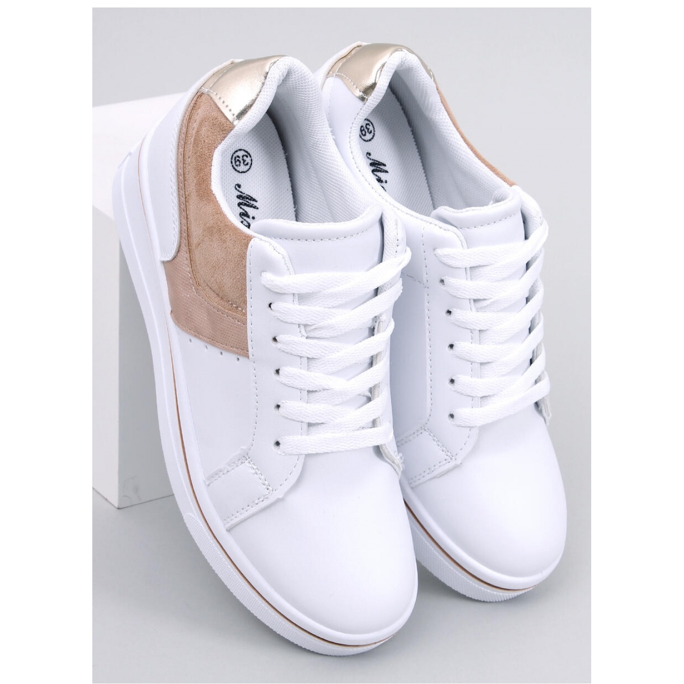 Detalii: Tenisi bej cu pană alb