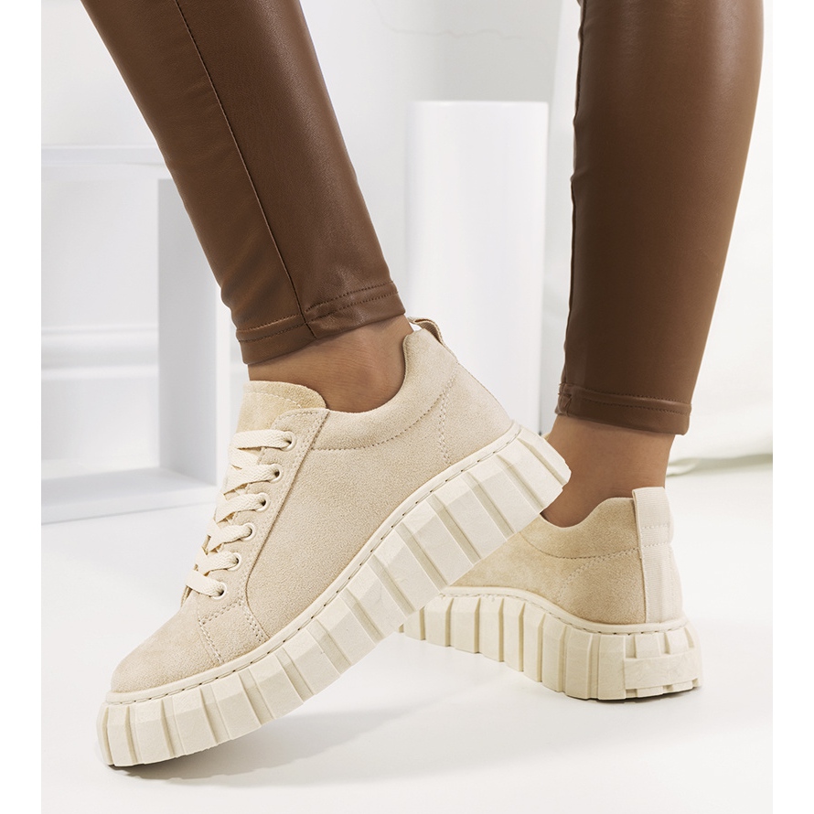 Adidașii Mirabel într-o nuanță de bej sunt un hit absolut al sezonului, combinând moda și confortul într-una singură. Datorită feței din piele ecologică de piele de căprioară, acești pantofi arată extrem de stilați și, în același timp, sunt ecologici. Talpa masivă, înaltă, nu numai că adaugă caracter, dar asigură și confort atunci când este purtată.
