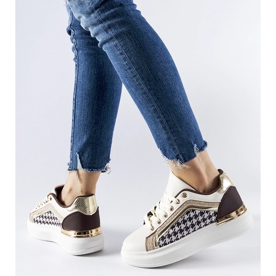 Adidașii echipate cu șireturi flexibile permit o potrivire perfectă a piciorului, asigurând în același timp un confort maxime de purtare. Detaliile impresionante de sclipici atrag ochii și oferă încălțămintei un personaj unic, contrastând minunat cu culorile clasice maro-bej. Datorită acestui model, acest model va deveni un element expresiv al garderobei dvs. de vară.