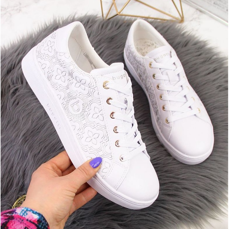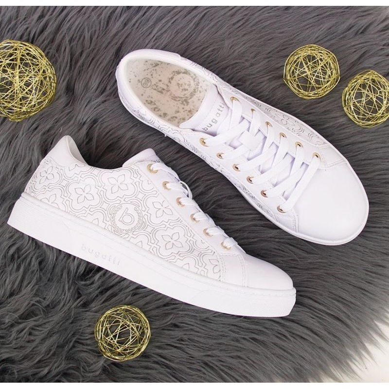 Pantofii sport Bugatti W INT1725 în alb sunt o alegere perfectă pentru fiecare femeie care prețuiește stilul, confortul și calitatea. Acesti pantofi eleganti, creati de renumitul brand elvetian Bugatti, se disting prin manopera perfecta si atentia la cele mai mici detalii, ceea ce ii face un element unic al fiecarei garderobe.