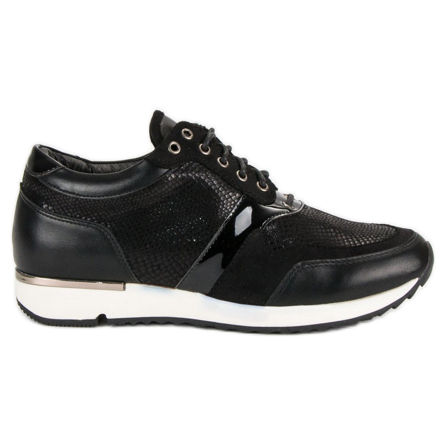 Adidașii negri casual de damă de la Filippo sunt soluția perfectă pentru femeile care doresc să îmbine stilul cu confortul. Acești pantofi la modă se vor potrivi perfect în orice aspect urban, de zi cu zi, adăugându-i prospețime și originalitate. Realizate din piele ecologica in trei texturi interesante - neteda, lacuita si sarpe - atrag atentia si ies in evidenta din fundalul modelelor clasice.